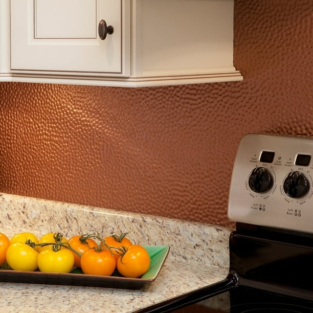 Hammered Copper Backsplash Kitchen The rich color of a copper backsplash will add an elegant look to any kitchen. Fasade hammered in moonstone copper kitchen backsplash panels are a perfect match for your kitchen backsplash ideas. The metal becomes one of the materials for making jewelry. Kitchen backsplash counter tops copper stainless zinc cleaning copper backsplash. Backsplash can glued on wainscoat, sheet rock,stone,glass ext. So, how does copper make a difference as a kitchen backsplash? Easy to cut easy to glue with power grab loktate. 25 ft.roll x 2 ft.