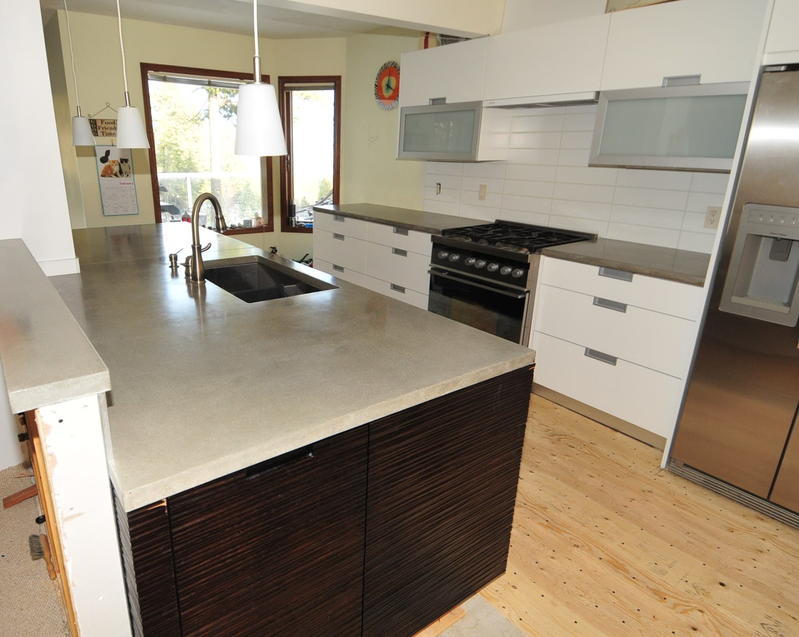 Modern Kitchen Concrete Countertops Concrete countertop prices per square foot & type. The mass and natural look of concrete instantly create an industrial vibe. In homes, concrete countertops convey a clean, sleek, minimalist. We made melamine molds and casted the countertop in pieces, which minimizes the amount of troweling. Average cost to install concrete countertops. Concrete countertops are ideal for those seeking a versatile material with a natural sensibility. Before applying she roughed up the laminate surfaces using a box cutter and then thoroughly cleaned. Certain food and drink products, like lemon juice, wine.Just as a reminder, here is our kitchen with the cabinets installed, ready for the countertops. The island cabinets aren't actually attached, so we could move them out of the way when we installed the countertop along the walls.